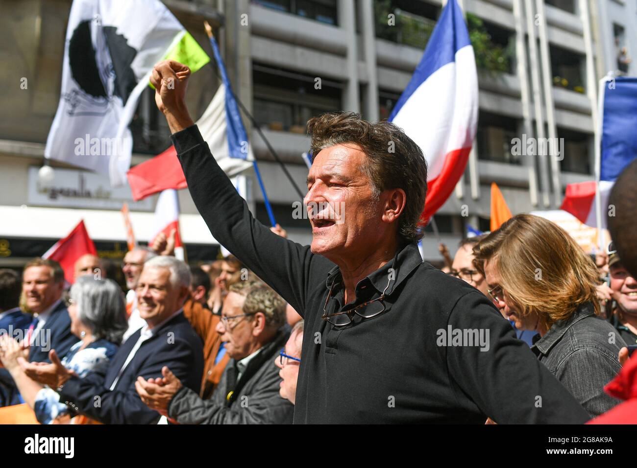 Paris Frankreich Juli 2021 Der Franzosische Journalist Richard Boutry Wahrend Der Anti Sanitar Pass Demonstration Auf Initiative Der Politischen Partei Les Patriotes Von Florian Philippot Am 17 Juli 2021 In Paris Frankreich Kredit Victor