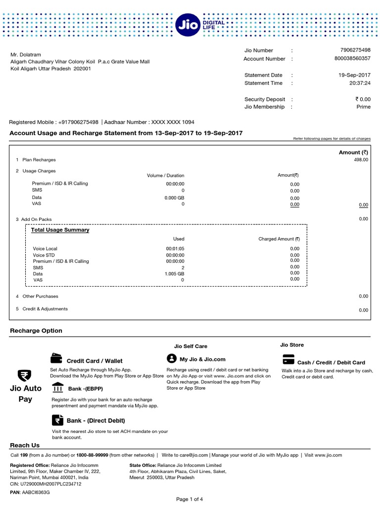 Jio Bill Pdf Credit Card Payments